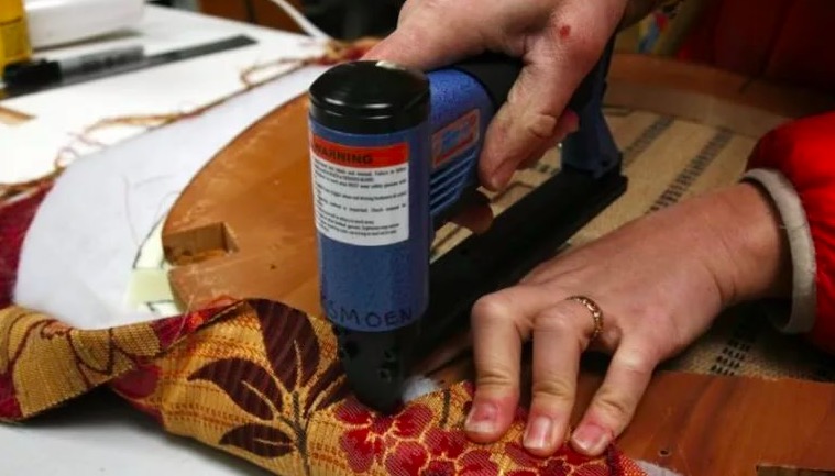 Профессиональные мастера помогут заменить обивку мягких стульев за несколько часов. Крепление поролона и ткани совершается при помощи специальных инструментов, клейкой ленты и скоб.